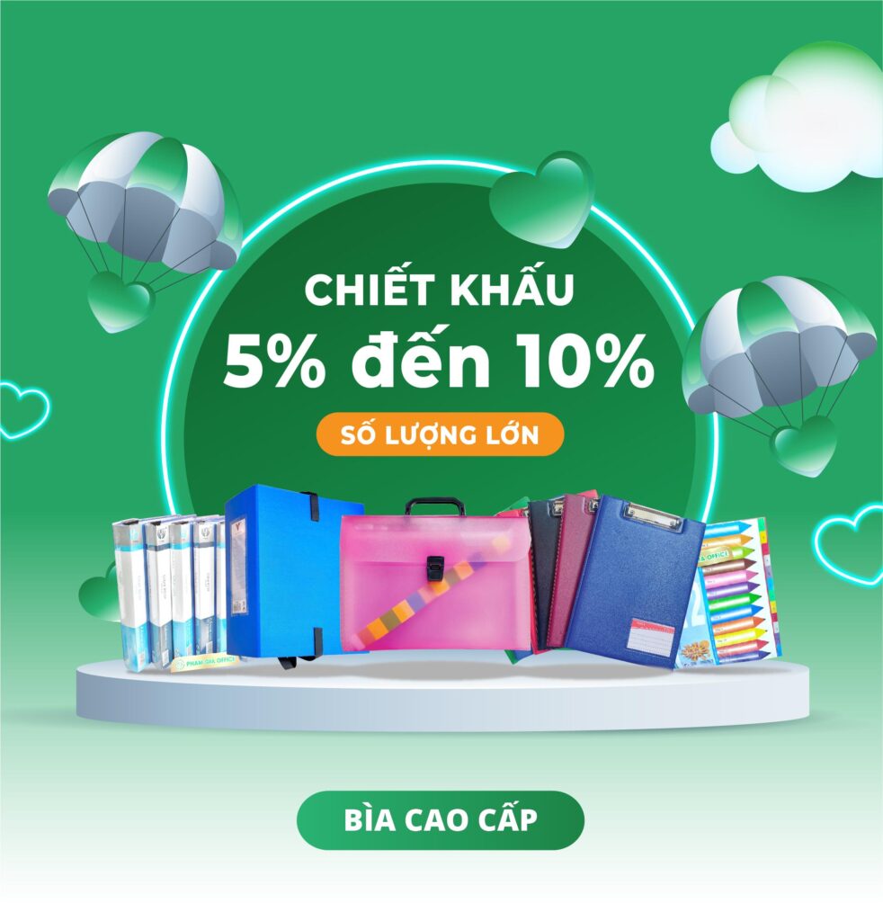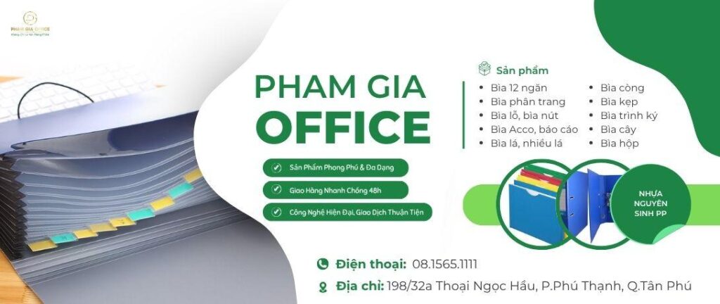 Phạm Gia Office tự hào là đối tác đáng tin cậy trong việc cung cấp các loại bìa cao cấp như bìa phân trang, bìa lỗ, bìa nút, bìa Acco, và bìa báo cáo,… Chúng tôi cam kết mang đến những sản phẩm với chất lượng hàng đầu, được sản xuất từ nguyên liệu chọn lọc, đảm bảo độ bền và tính thẩm mỹ cao. Các sản phẩm của chúng tôi không chỉ tối ưu hóa không gian lưu trữ và tổ chức tài liệu hiệu quả mà còn đem lại sự chuyên nghiệp và gọn gàng cho không gian làm việc.