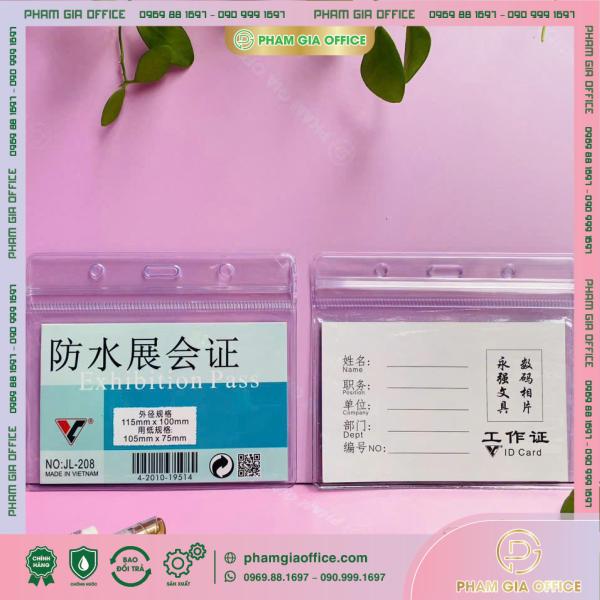 Thiết kế: Dạng ngang hoặc đứng, viền ép nhiệt chắc chắn, mặt trước trong suốt giúp dễ quan sát nội dung bên trong, có khe cài dây đeo, móc hoặc kẹp áo tiện dụng.