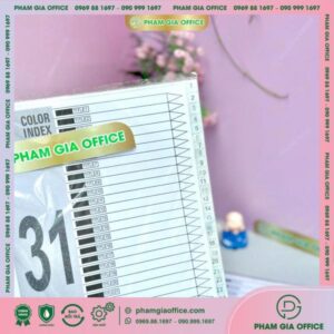 • Chất liệu: nhựa mềm, gồm có 31 bìa