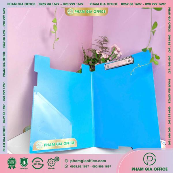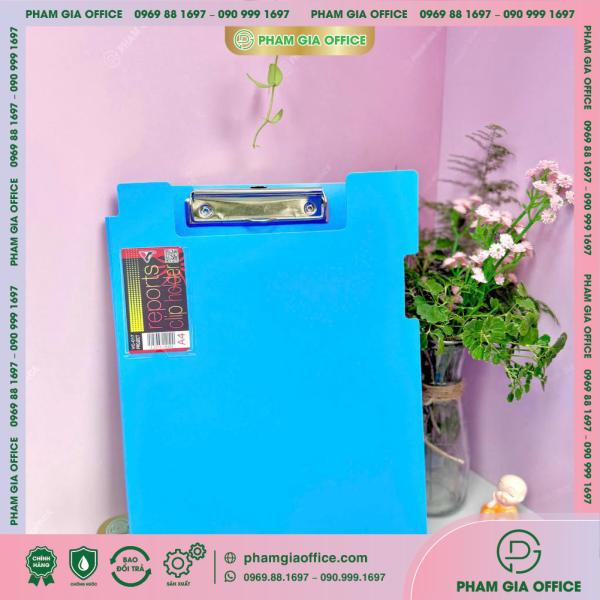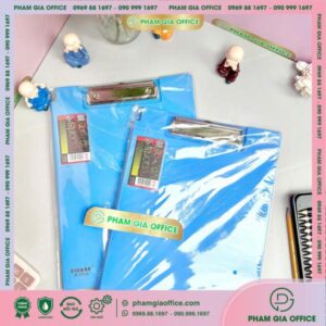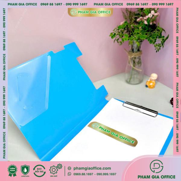 Đặc điểm: là sản phẩm làm từ nhựa nguyên sinh PP thân thiện với môi trường, kẹp inox phía trên để kẹp giấy các khổ A4 – A5.