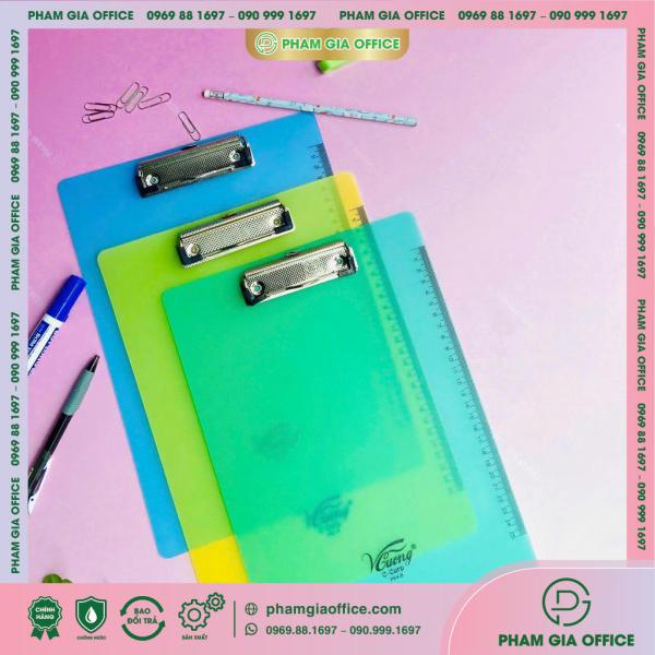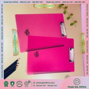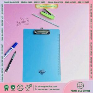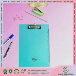 • Đặc điểm: là sản phẩm làm từ bìa cứng được nhập khẩu từ Thái Lan, dán simily bên ngoài, kẹp inox phía trên để kẹp giấy các khổ A4 – A5.
