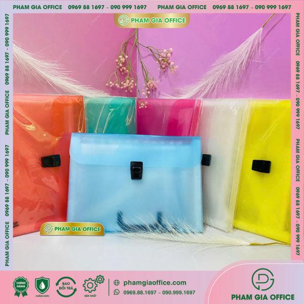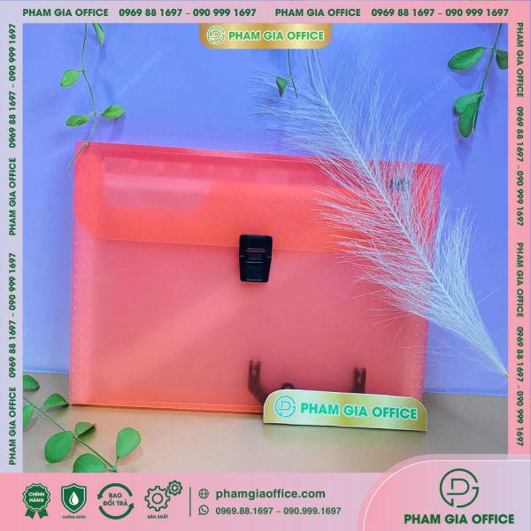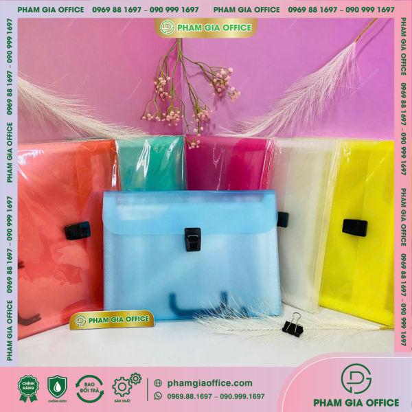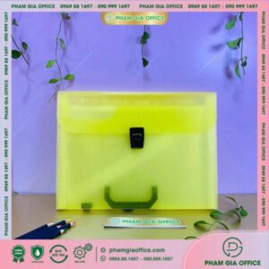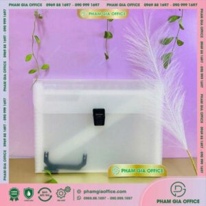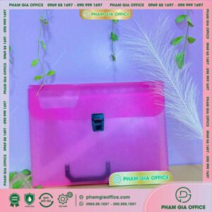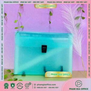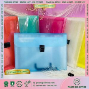 Được làm bằng chất liệu nhựa cứng rất chắc chắn, bên trong là ngăn đựng tài liệu có độ co giãn tốt, giúp bảo quản giấy đựng bên trong. Bên cạnh đó, chất liệu nhựa này rất an toàn cho người sử dụng. Sản phẩm được thiết kế như một chiếc cặp hộp thông thường cho bạn dễ dàng mang theo khi đi học, đi làm. Bên ngoài, cặp có nhiều màu sắc cho bạn lựa chọn. Sản phẩm có 12 ngăn nhỏ bên trong giúp bạn phân loại và cất giữ tài liệu thuận tiên hơn.